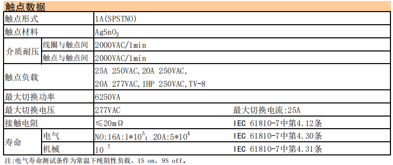 ◆ 高常开触点负载能力